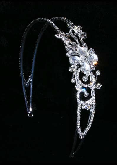 This headband is 1 3/8" wide with rings. Silver plated. Each piece is individually wrapped in plastic.