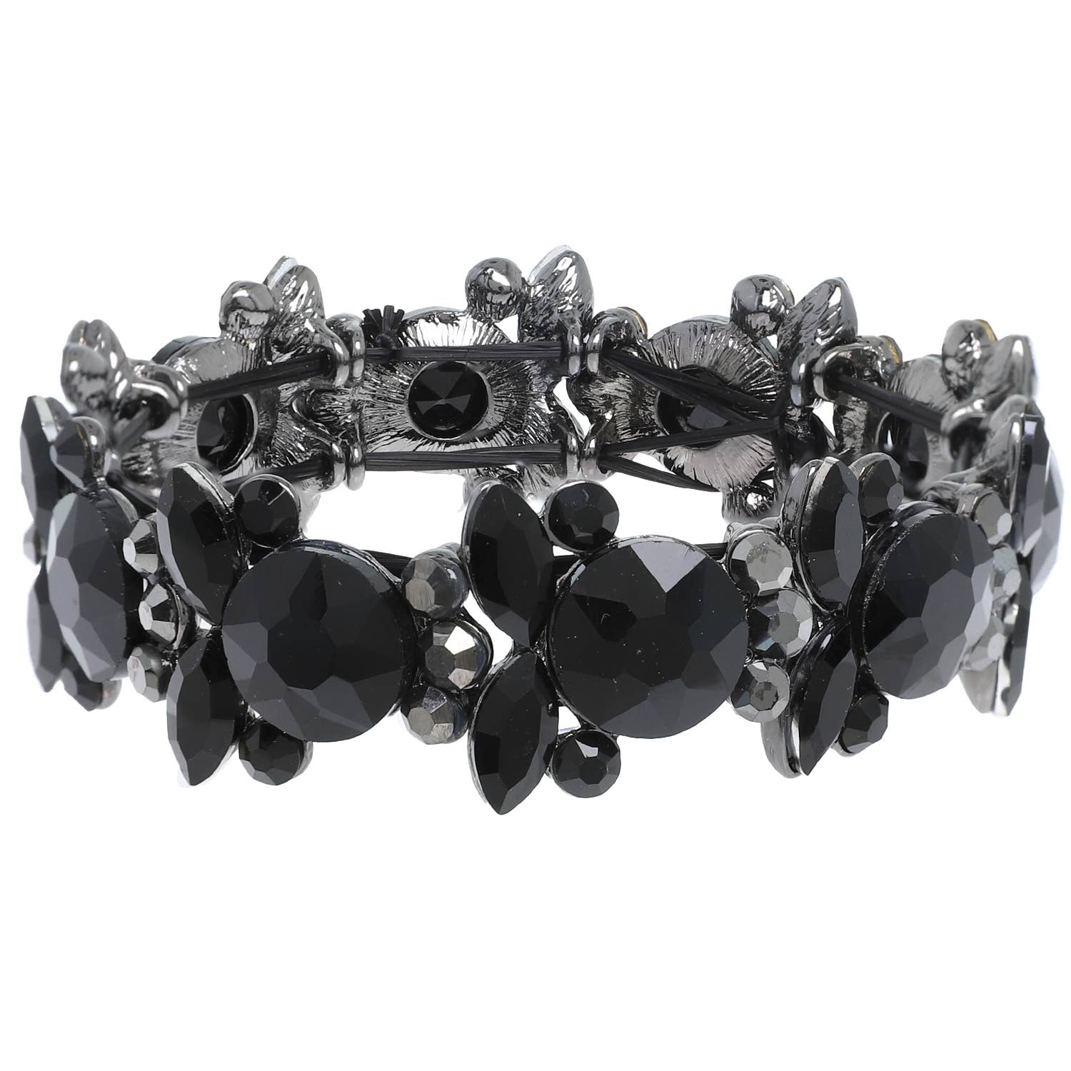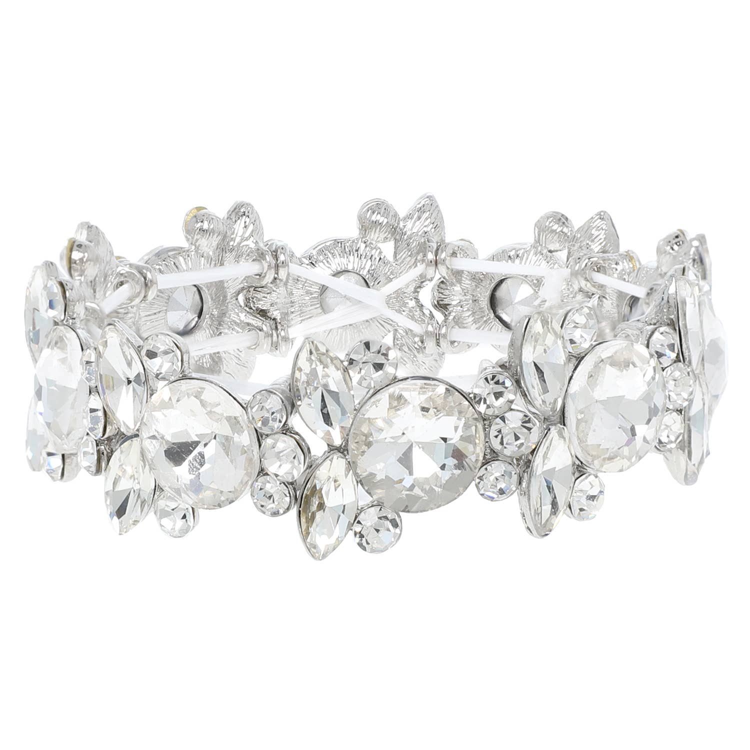 VINE PETAL VINTAGE BAROQUE GEMSTONE RHINESTONE CLUSTER COCKTAIL FANCY ELEGANT STONE JEWELED GLAM EVENING DRESSY FORMAL PROM PARTY BRIDAL WEDDING BLING STATEMENT ONE SIZE JEWELRY BANGLE STRETCH BRACELET