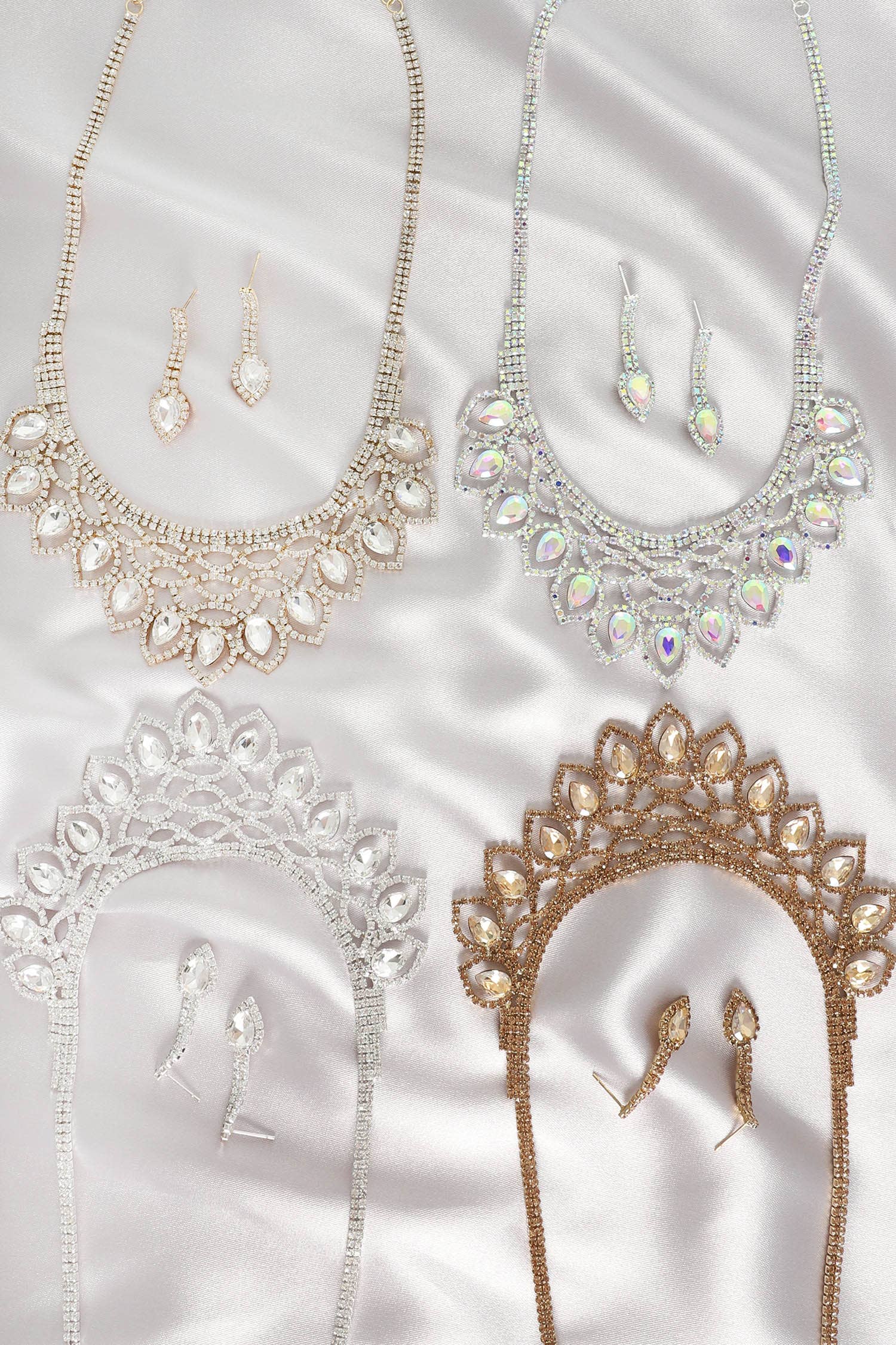 Crystal Rhinestone Pave Teardrop Necklace Set