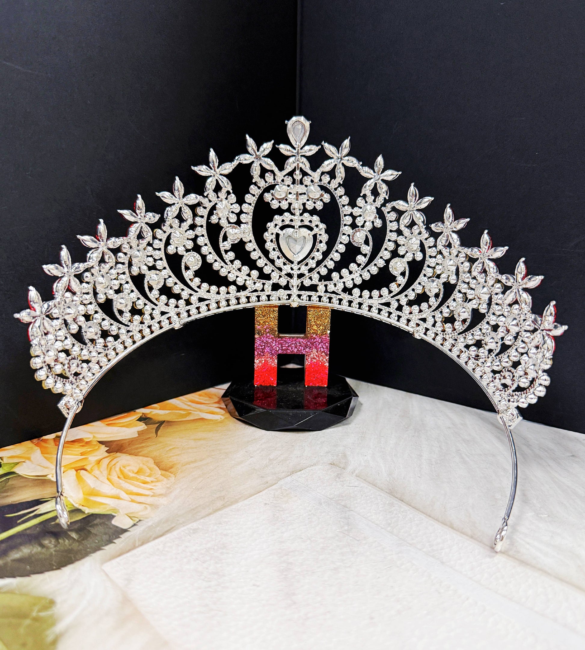 Red Crystal tiara, silver heart tiara, Bridal Headpiece