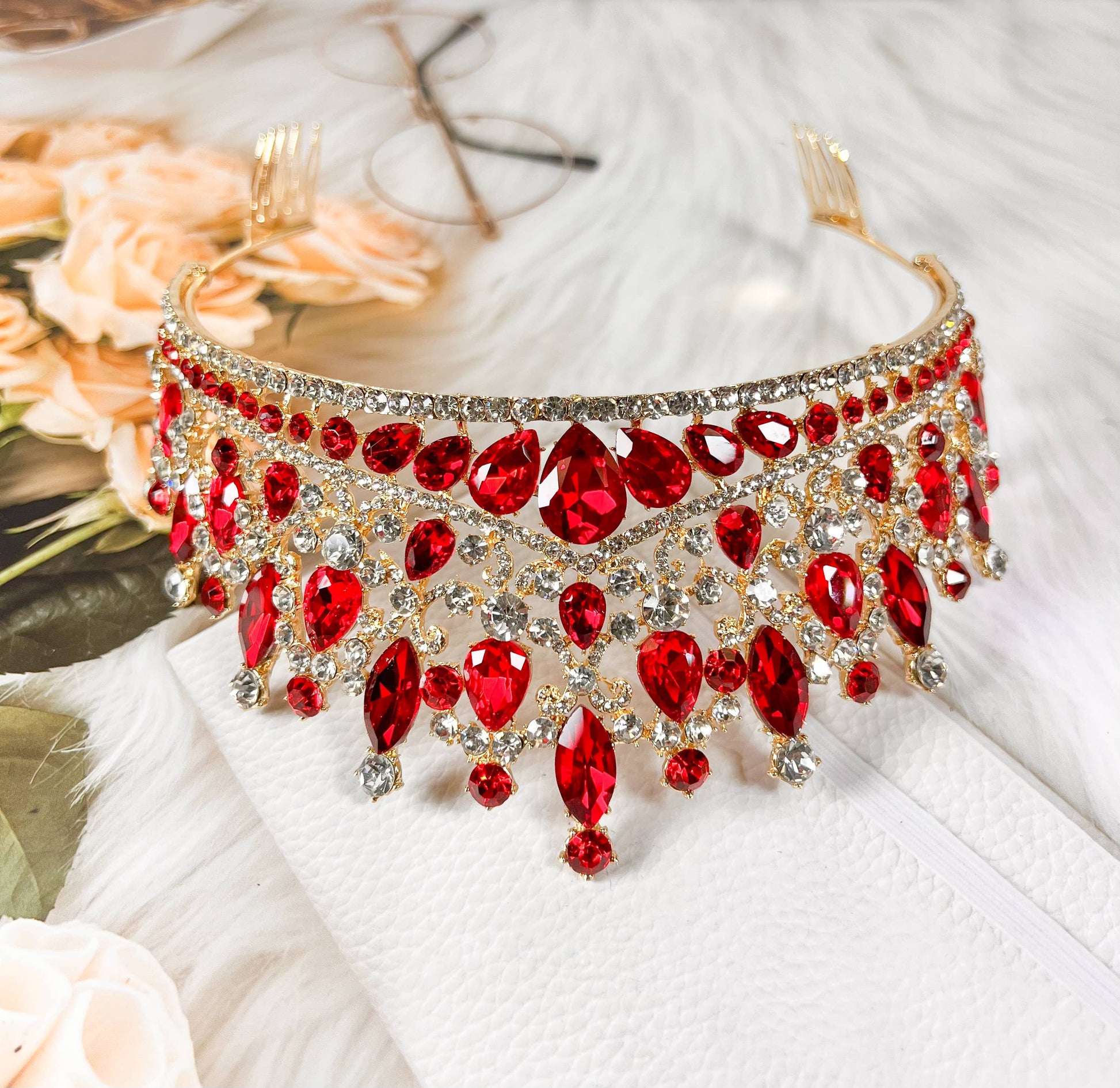 Ruby Red Crown for Bridal Princess Tiara Wedding Headpiece