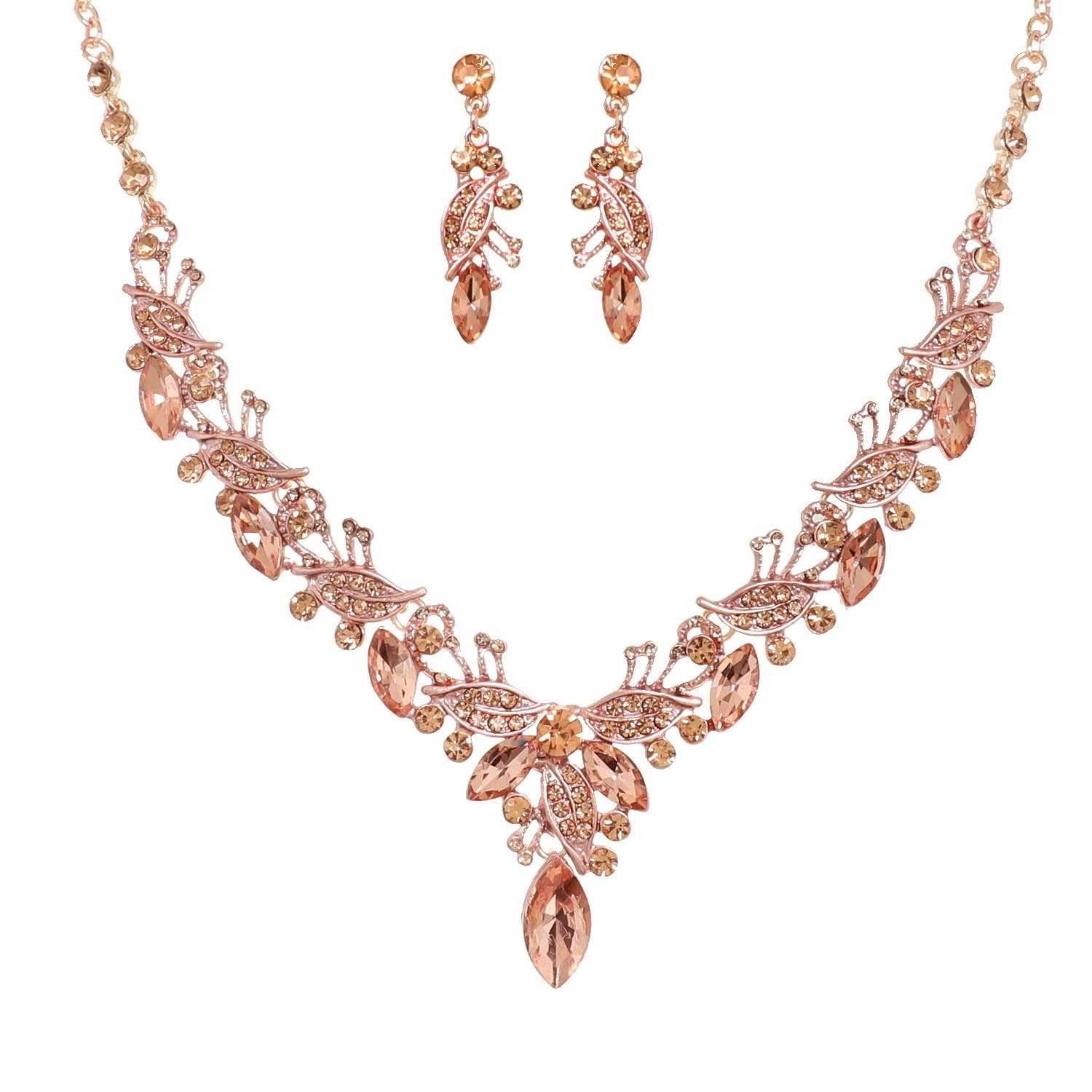 Vine Gemstone Cluster V-Shaped Necklace Set